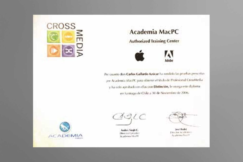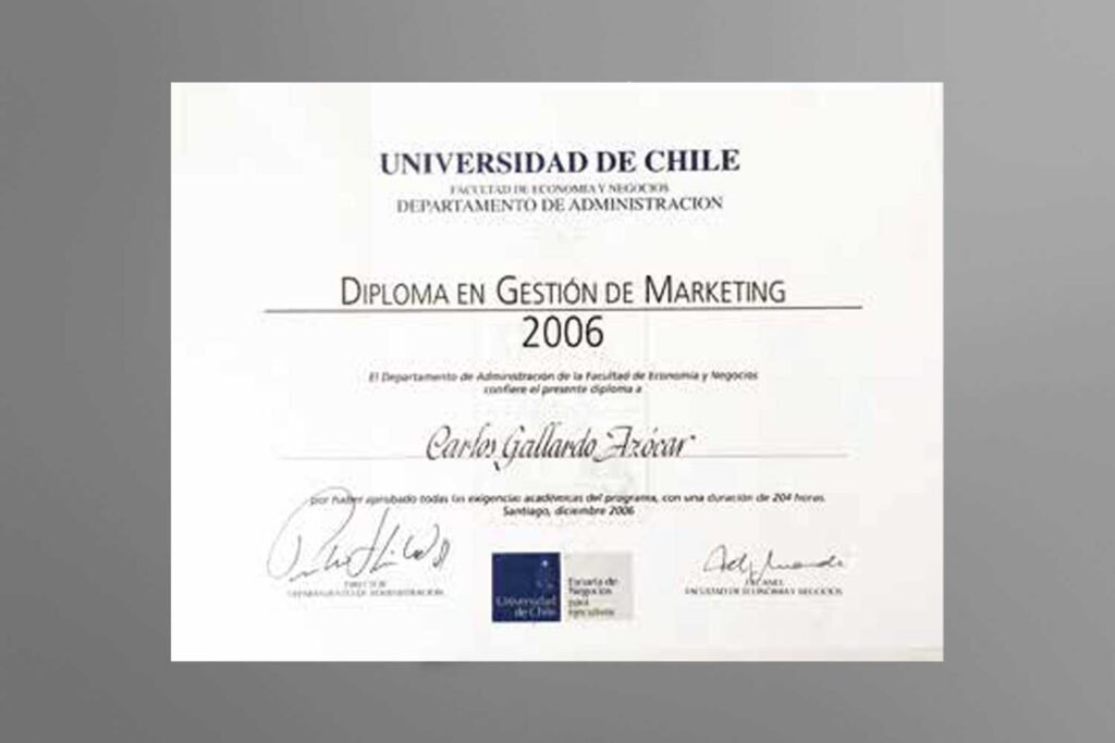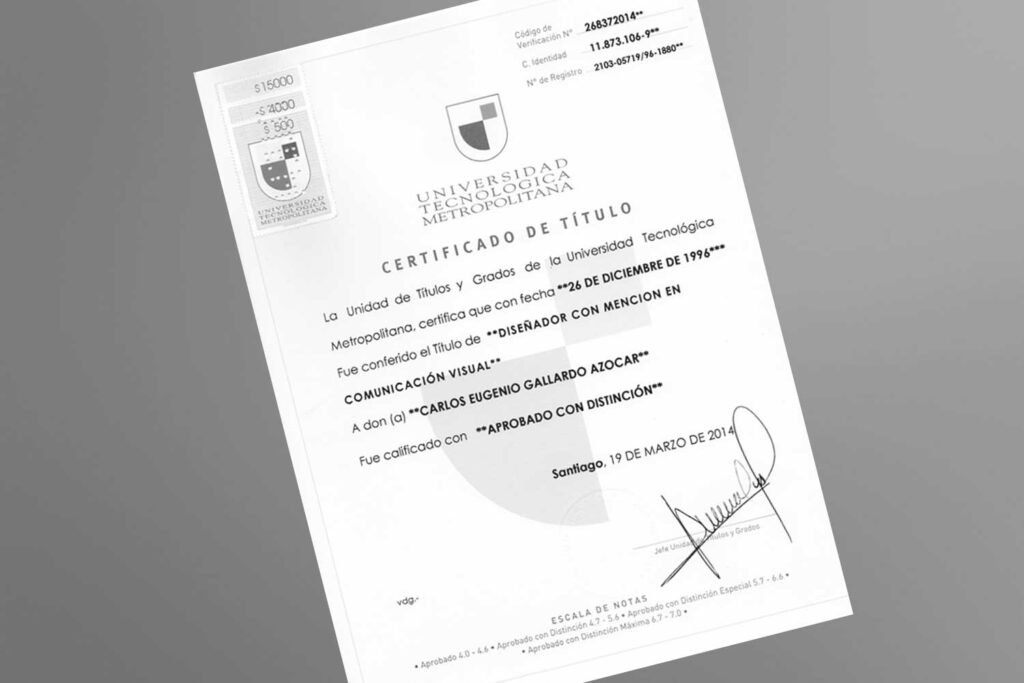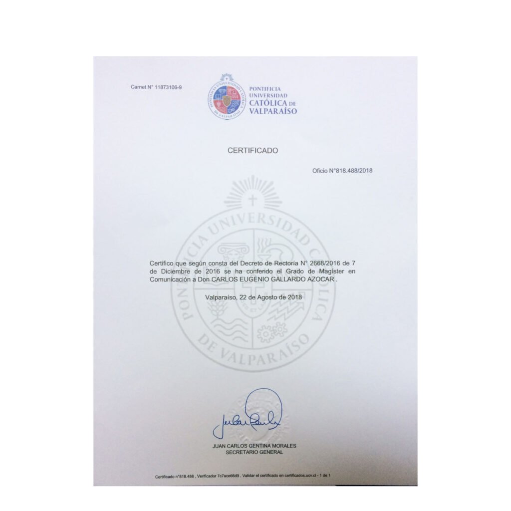 Carlos Gallardo Azócar, diseñador gráfico UTEM, magíster en comunicaciones UCV, diplomado en marketing Universidad de Chile y crossmedia Academia Mac